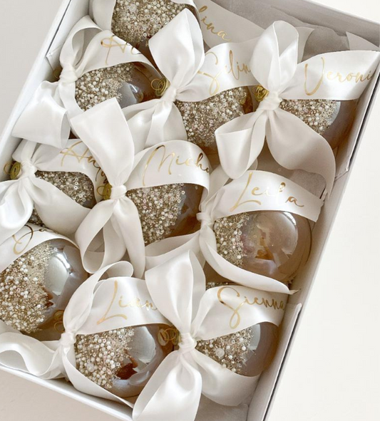Personalised Velvet Bow Glass Baubles