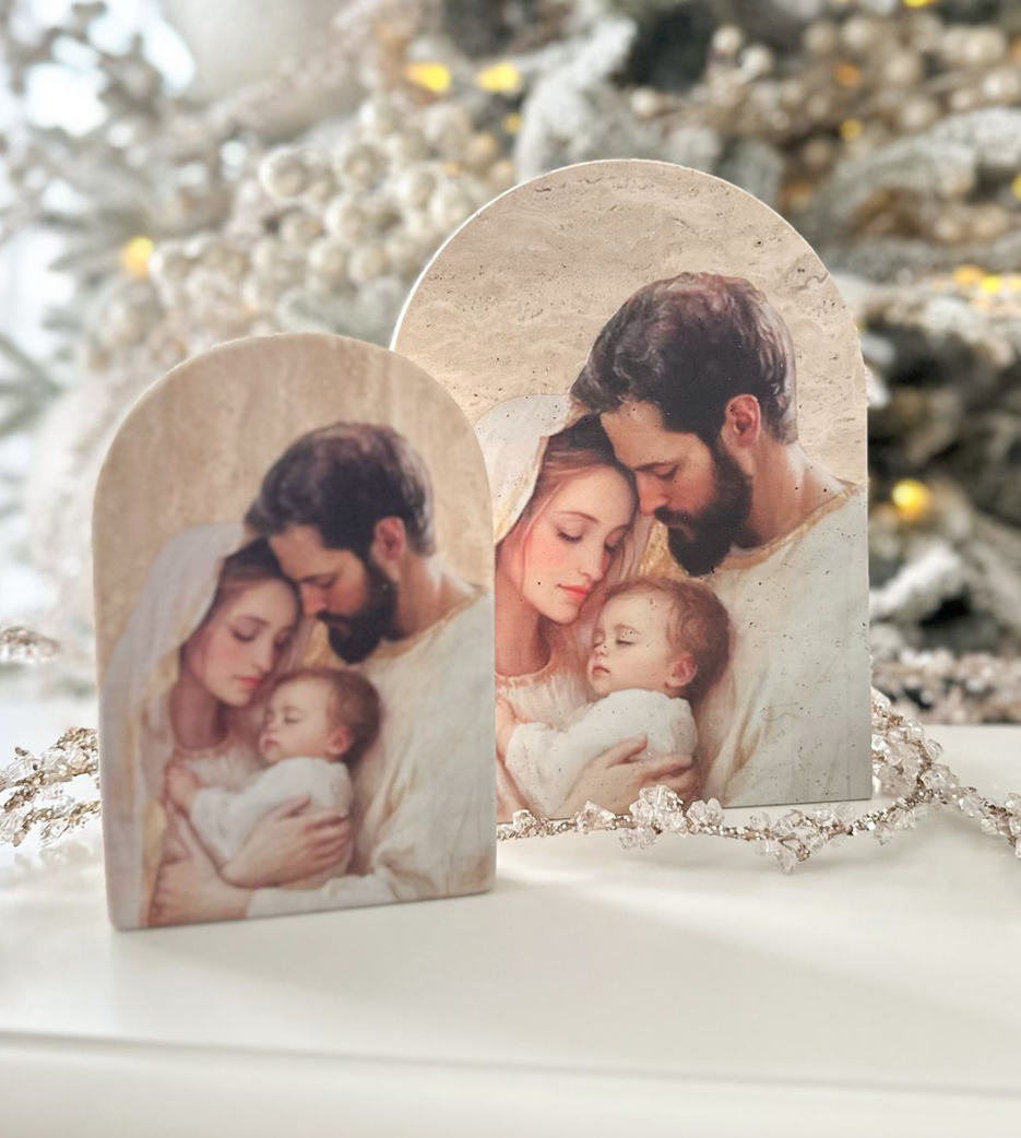 Our Travertine Holy Family Large Arch Block is a timeless piece that beautifully blends faith and elegance, making it an ideal housewarming gift or keepsake for the festive season. Each block is crafted from natural travertine stone, giving it a unique texture and warmth that complements any home décor.