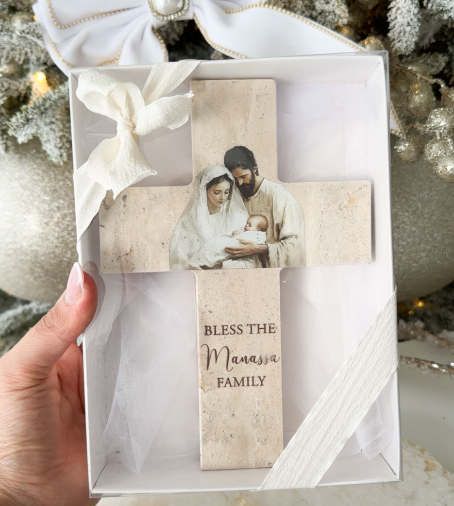 Our Travertine Cross featuring the Holy Family is a meaningful and elegant piece — the perfect housewarming gift or keepsake for the festive season. Each cross is handcrafted from natural travertine stone, giving it a unique texture, character, and warmth that complements any home décor.